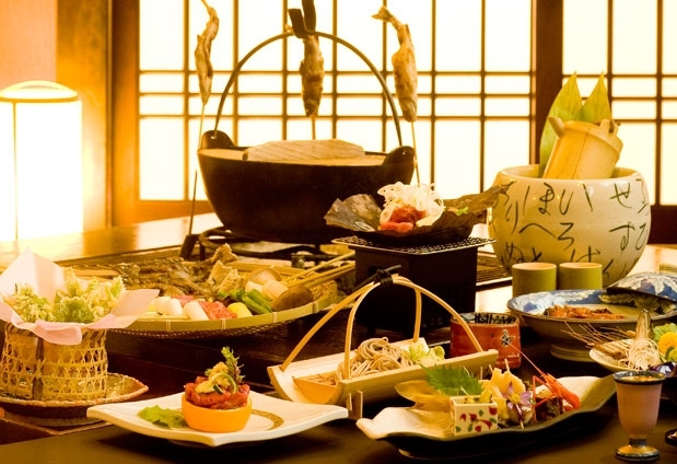 在附設鄉村風地爐的日式料理飯館【山家庵いろりん亭】裡,可享用使用豐富當地新鮮食材料理成的懷石料理。喜愛肉食的人一定會抵抗不了的【信州肉三昧懷石】,或是以在地名產鯉魚甘露煮為代表的家鄉料理之創作會席料理等,一邊品嚐信州飲食文化的同時,一邊享受愉快的時光吧!