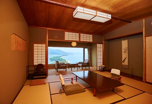 總共有17間客房,全部房間都是海景房。從這裡可以眺望日本三景【天橋立】以及【宮津灣】。從超大窗戶看出去的景色,被評為如畫一般的美麗。靠在椅背上,一邊啜飲茶,一邊欣賞風景當然很不錯,不過也很推薦躺在和室裡欣賞喔。