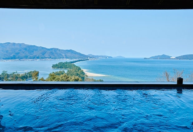 在可以將【天橋立】景色盡收眼底的【玄妙庵】裡,其中推薦的絕景地點是展望浴池。將肩膀以下都浸泡在浴池裡的話,就像與海洋連在一起一樣,可以享受好像泡在海中一樣的有趣心情。豐饒自然散佈在眼前的景色中,讓人能由內而外徹底放鬆。