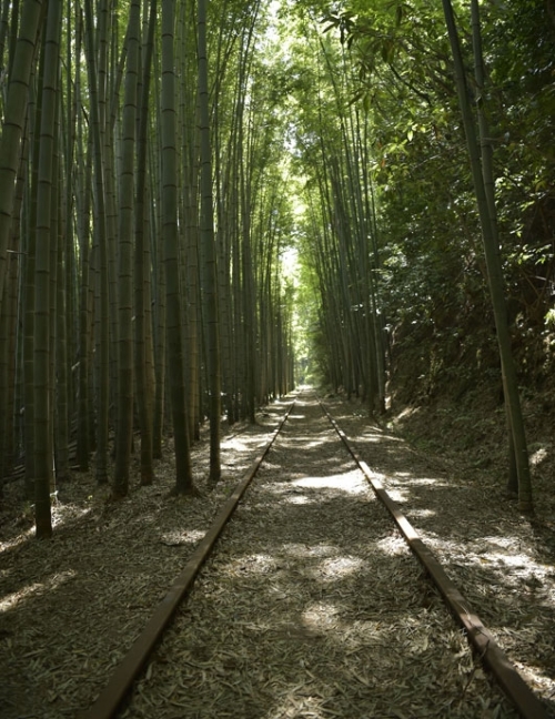 從舊泰久車站沿著鐵軌步行5分鐘即可看見竹林!
