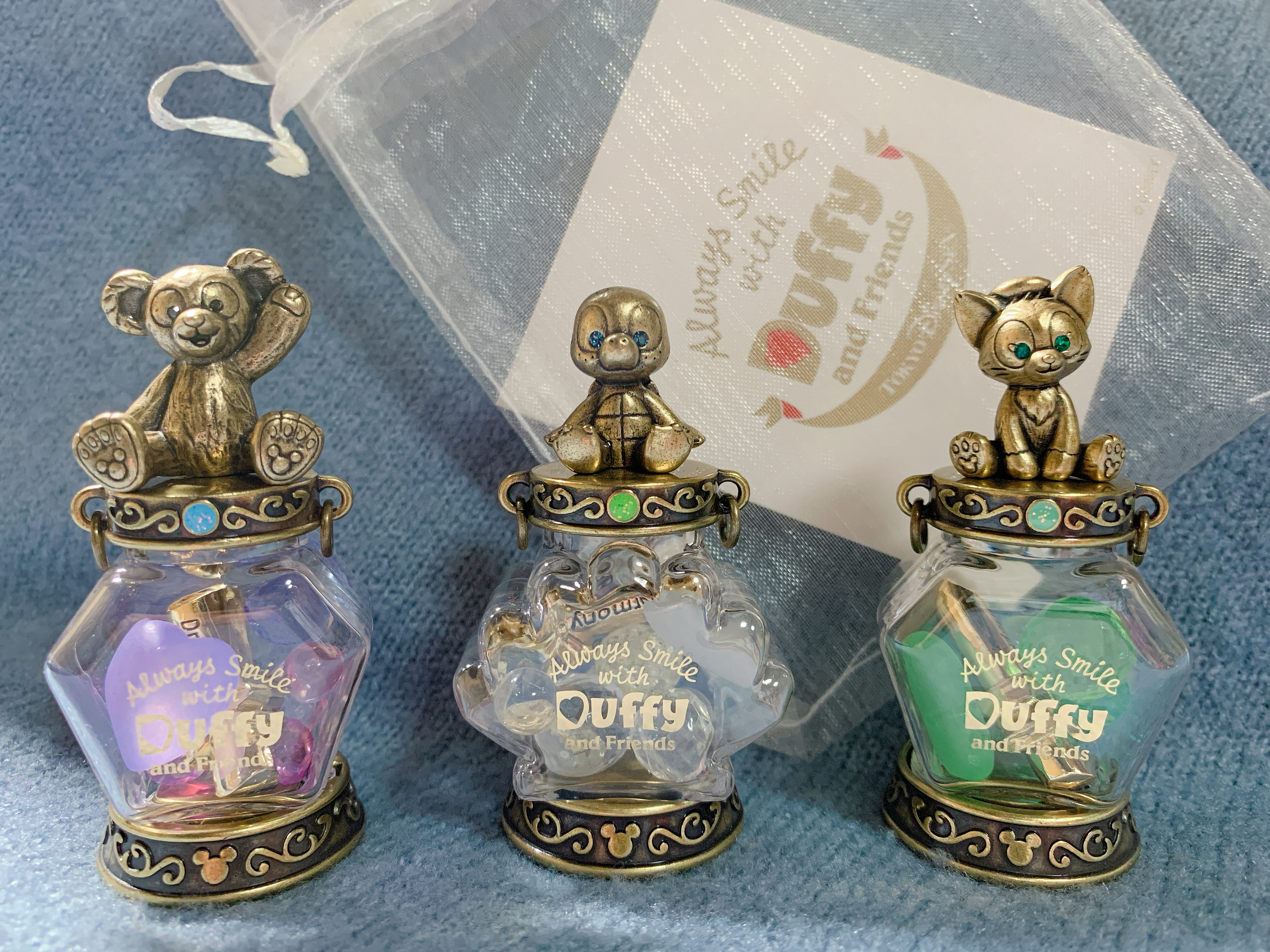 今年2020正好是東京迪士尼海洋吉祥物「達菲熊」(Duffy)登場滿15週年,迪士尼特別推出以「Always Smile with Duffy and Friends」為主題的系列週邊,第二波商品是於2020年10月5日開始販售「歡樂魔法瓶」(Happiful Bottle)造型繽紛可愛,完全客製化,不只能照喜好選擇瓶蓋、瓶身、內容物、吊牌與鏈子,還能在吊牌上刻字。想要購買這款「Happiful Bottle」,一定要在官網上事先確認入園日期並預約到店時間,當天在指定時段過去製作與取貨等待時間大概15分鐘就能拿到成品,而基本款的組合含有吊牌、公仔、瓶子與串珠,售價為2900日幣。