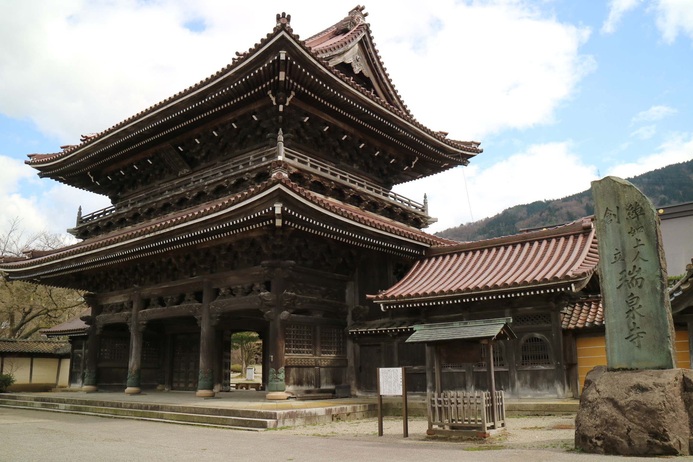 明德元年(1390年),由本願寺5代綽如所建造的著名寺院。寺院裡隨處皆可見精緻的雕刻設計。有著北陸地區首屈一指的本堂,以及集結井波雕刻的技術而重建的太子堂等許多值得一看的地方。自庄川峽觀光船小牧港開車約10分鐘即可抵達瑞泉寺。
